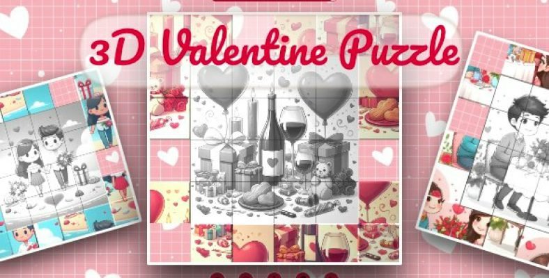 3D Valentine Puzzle is a puzzle game with valentine theme, your task is to move puzzle pieces from random positions to correct places and complete the picture. Be quick, time is running out!