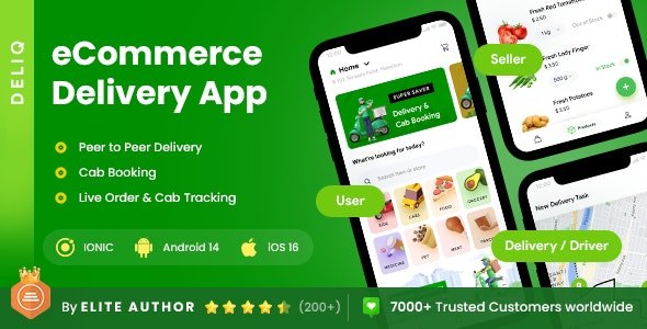 6 App Template| eCommerce Food Grocery Delivery App| Cab Booking| Peer to Peer Delivery App| DeliQ