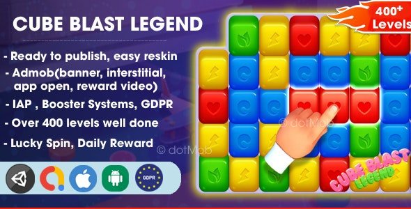 Cube Blast Legend is trending Match 3 game on Google Play and App Store. This game helps you reduce time to build a similar game. You do not need to know any programming language to configure and use it. It is very easy to fill it with your own tasks, make UI changes,change your Admod, Unity ads ID start to gain experience in promoting your game and earning money. We will support you until you feel the most satisfaction for this asset.