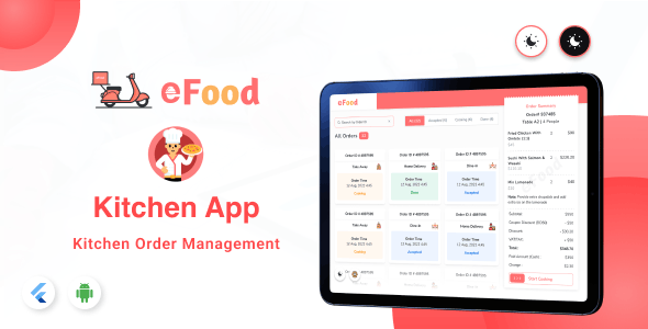eFood Kitchen app is another important module of the eFood single restaurant food delivery project. This app is specially designed for Tablets though it is also supported on mobile phones. Using this app a restaurant can manage all types of orders in the kitchen for cooking and can provide updates about the status of an order from the kitchen.