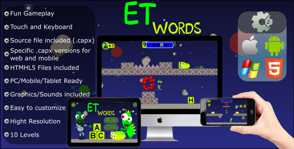 ET Words is an educational game in which the child will learn to form words in a fun way. The player must find the right letters to form the word for each mission, but be very careful with the enemies that want to catch you.