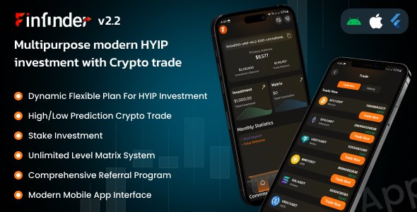 The FinFunder Flutter application is your gateway to seamless integration with top-notch HYIP investments and bustling crypto trading, seamlessly operating on the Matrix Platform. Designed with the latest FinFunder standards, this app propels you towards strategic financial growth with ease and reliability. All you need is the FinFunder platform installed on your server to unlock various advanced trading functionalities and investment strategies tailored to maximize your efficiency and returns.