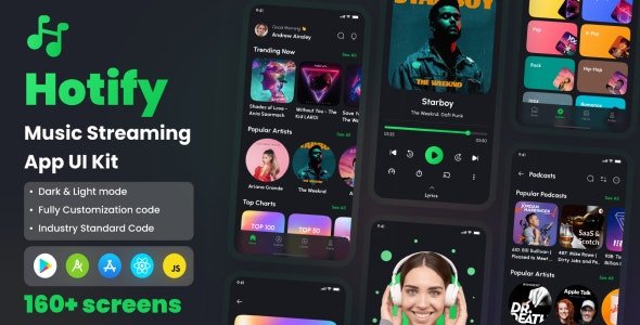Hotify is a revolutionary music streaming app built on the React Native CLI UI Kit, designed to deliver an exceptional listening experience like no other. With its sleek and intuitive interface, Hotify redefines how you enjoy music, offering a world of possibilities at your fingertips.