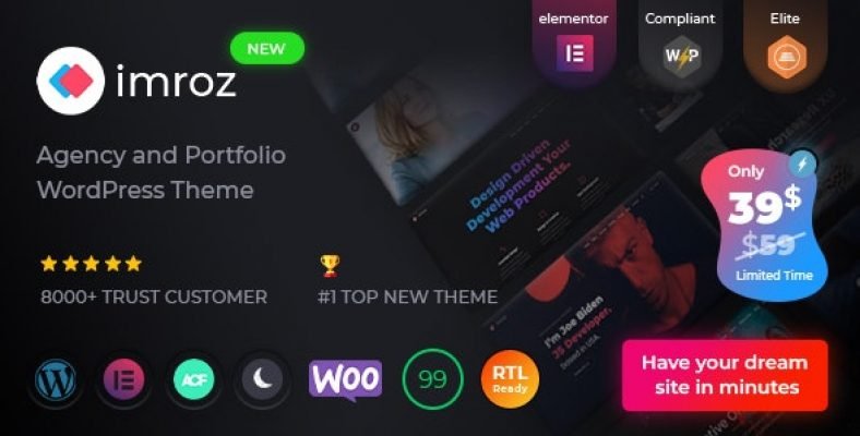Welcome to Imroz WordPress Theme. It’s built with Elementor page builder. It comes with 15+ home demo pages, other inner pages, awesome blog, 30+ custom widgets that fill up your needs with Dark Mode Style. It’s fully responsive and looks well. It is a modern design and high-speed performance WordPress Theme. It has available Creative Agency, Creative Agency Landing, Personal Portfolio, Personal Portfolio Landing, Minimal Portfolio, Home Particles, Digital Agency, Business, Home Parallax, Startup, Studio Agency, Freelancer, Minimal Portfolio, Parallax, and other needed inner or detailed pages availability.