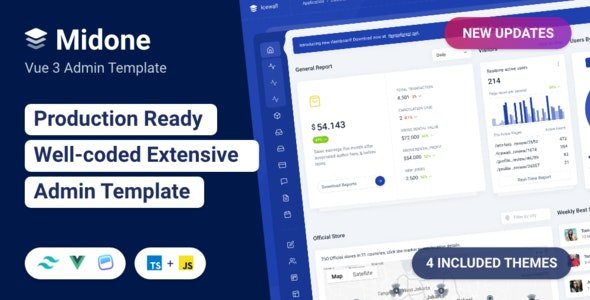 Midone is a Vue 3 admin dashboard starter kit with TailwindCSS integration. You can use Vue 3 new features as well as a TailwindCSS component. The project scaffolding and directory structure has been specially designed for production.