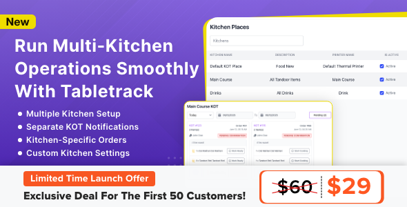 Note: Please note that the Multi-Kitchen Module is not a standalone product and is only compatible with Tabletrack version 1.2.33 or newer.