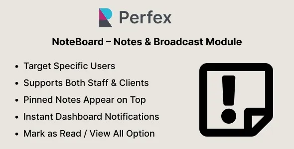 The NoteBroad Module for Perfex CRM enables administrators and authorized staff to create notes or send broadcast messages to selected staff and customers.