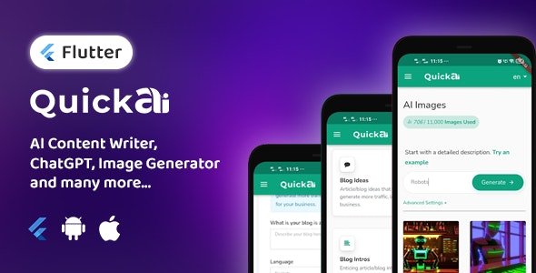 QuickAI App is a webview based flutter application of the QuickAI OpenAI – ChatGPT – AI Writing Assistant and Content Creator PHP script.