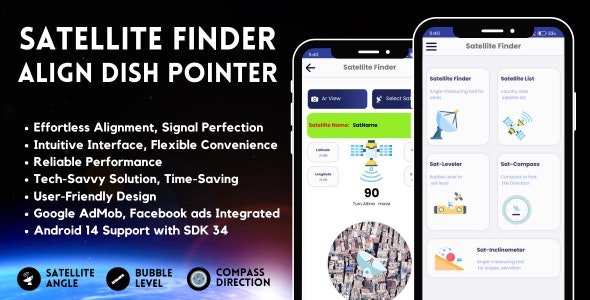 Satellite Finder Align Dish Pointer with AdMob Ads Android
