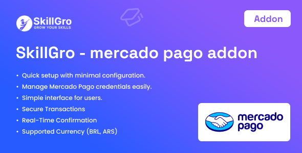 The MercadoPago Payment Gateway Addon for SkillGro LMS is your perfect partner for streamlining course enrollment with its seamless payment process. By integrating one of the world’s most popular payment gateways, MercadoPago, this addon ensures both educators and students enjoy a smooth transaction experience. No more payment hassles; learners can now access their desired courses swiftly and securely.