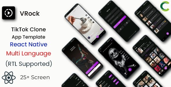 VRock is tiktok clone app template in react native. User can create short video, share short video, view video, etc using this app template. It is built using React Native. So, It is support android and ios both.